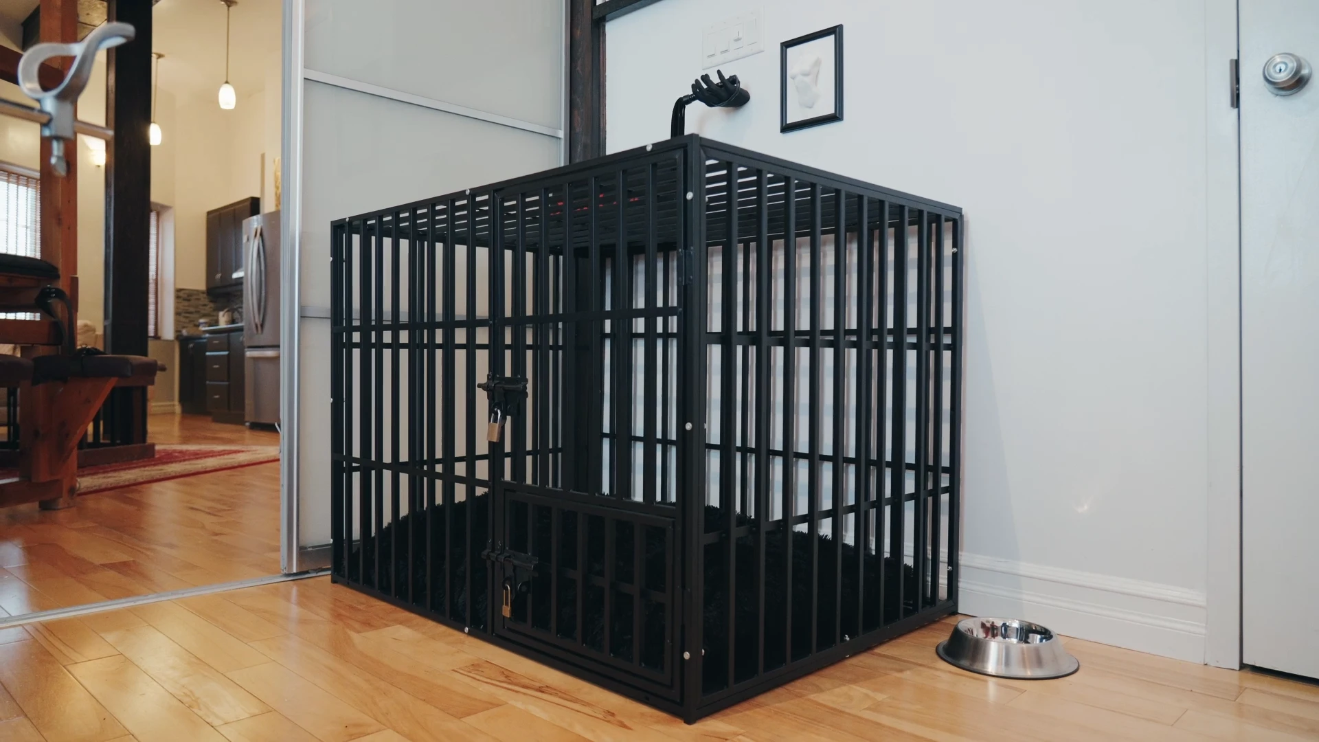 Большая запираемая клетка, которую можно использовать как многофункциональную скамью (с матом для длительного использования)