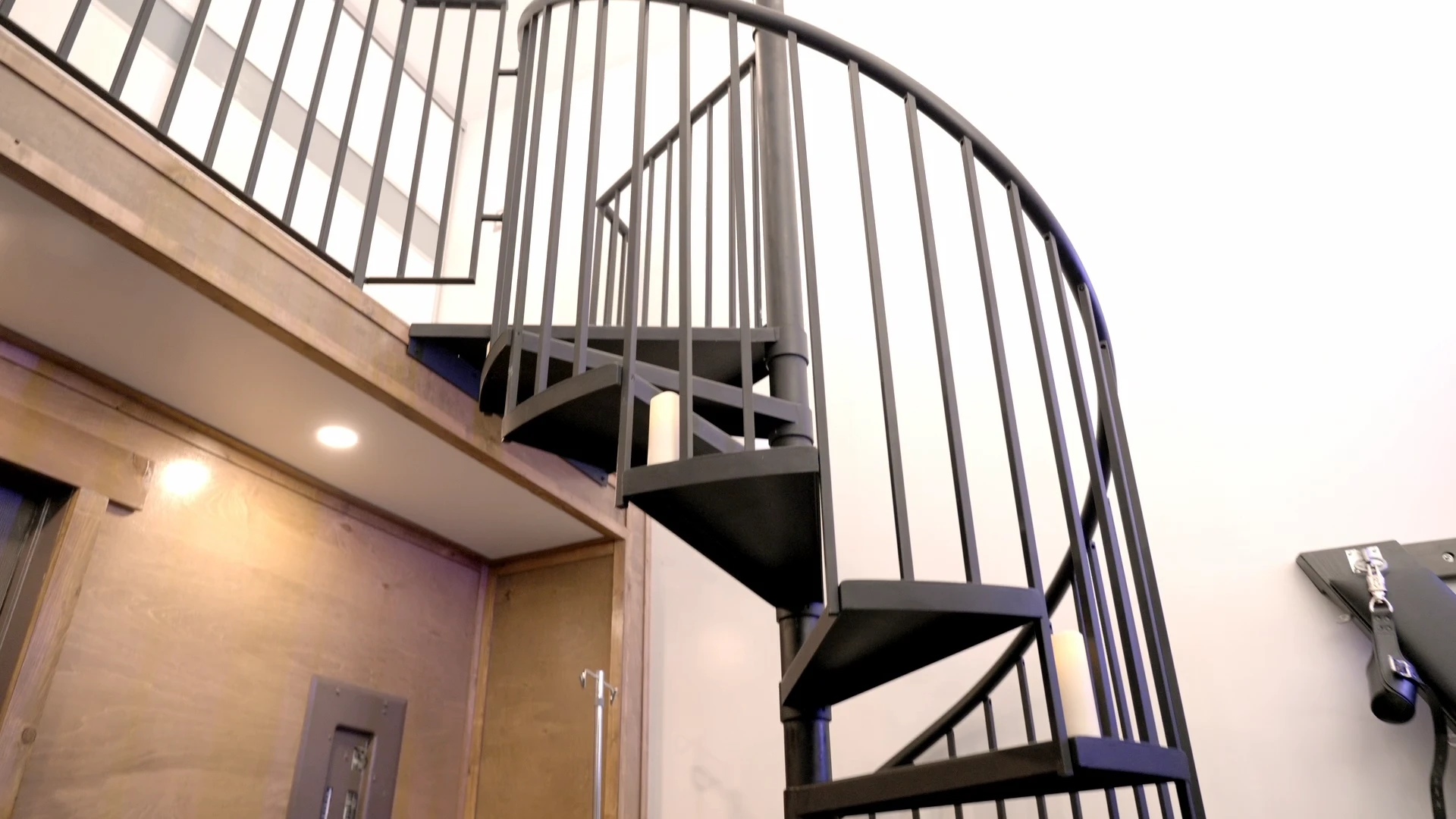 В основе пространства — большая игровая зона и изящная винтовая лестница, ведущая на антресоль с открытой спальней, откуда через балкон просматривается весь зал, позволяя проводить игры одновременно на обоих уровнях. На первом этаже расположены кухня открытой планировки и полноценная ванная комната с просторным душем.