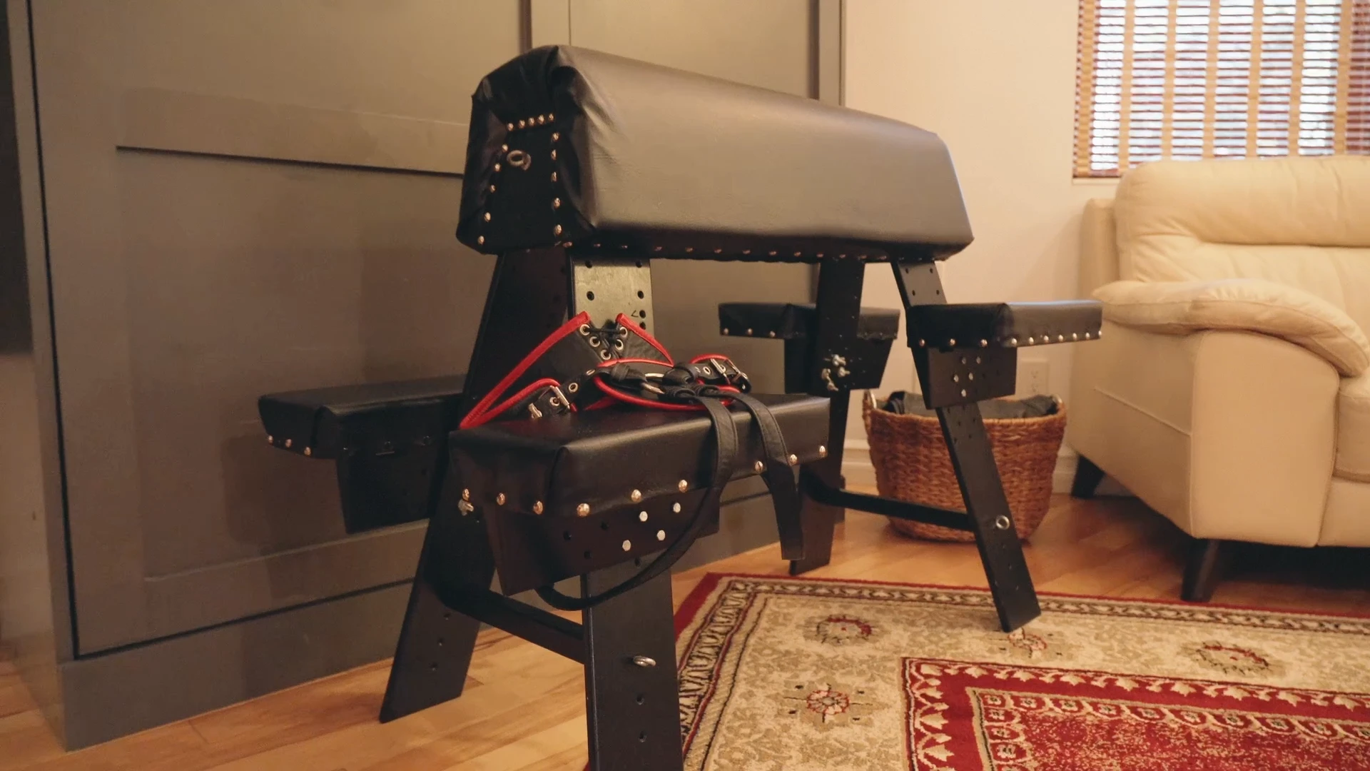 Многофункциональная кровать для бондажа со встроенной скамейкой для порки и колодки для фиксации